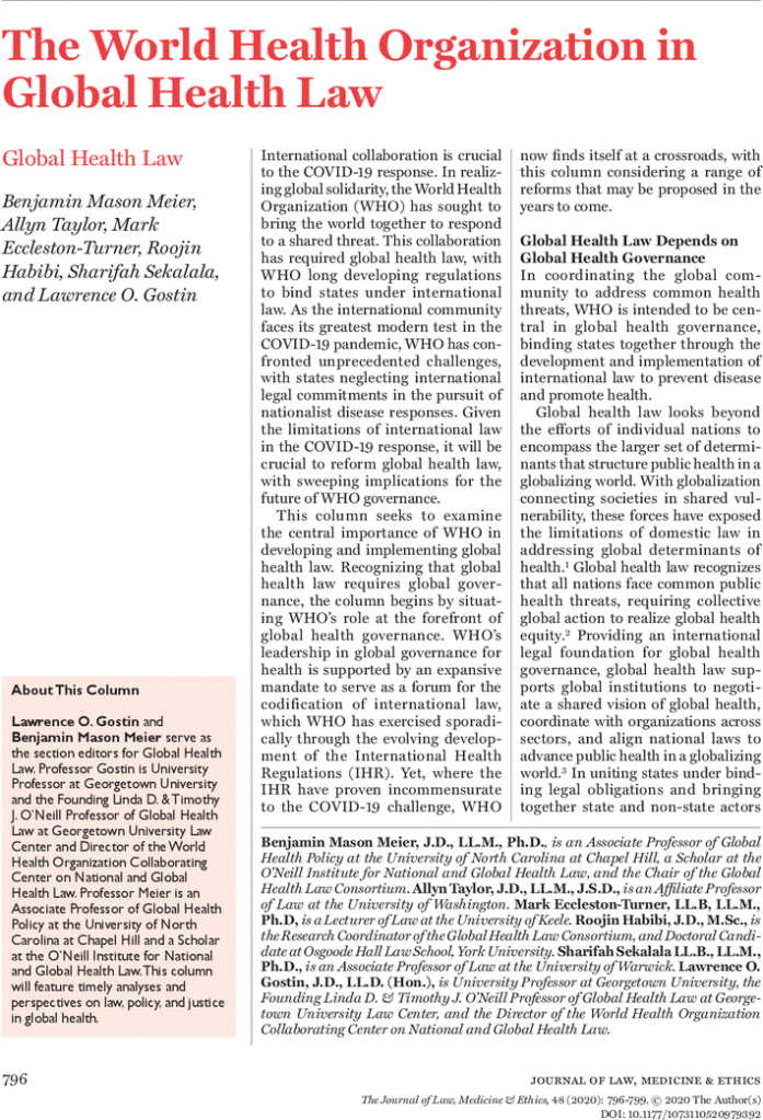 The GHLC collaborates both in smaller working groups as well as through its full membership to drive scholarship, training, and advocacy in global health law.