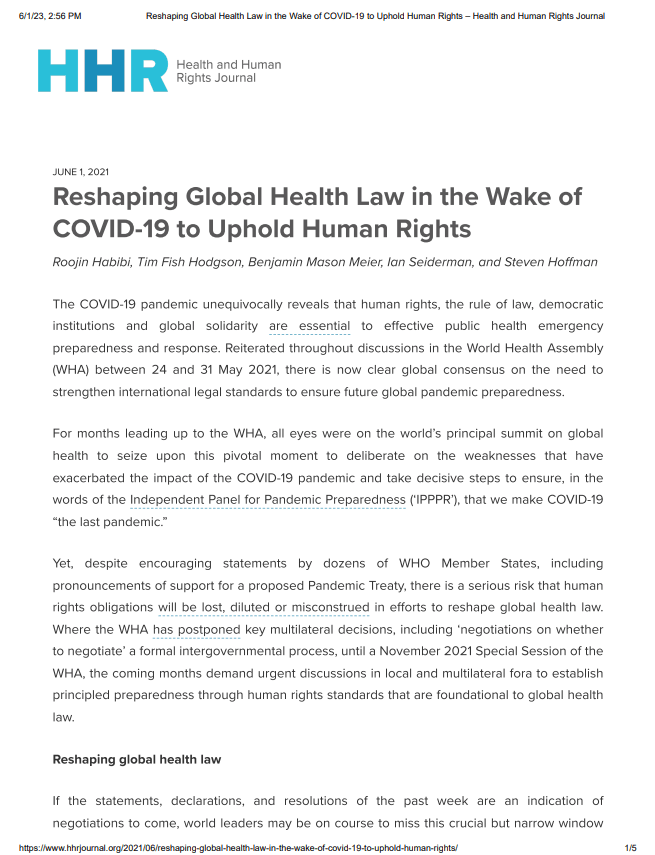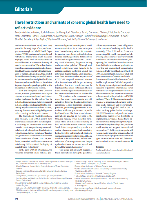 - Steven J. Hoffman, York University, Canada